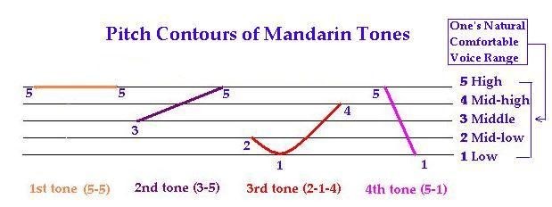 نشانه‌های آهنگ روی مصوت‌ها قرار می‌گیرند. در چینی ماندارین 4 آهنگ اصلی به نام آهنگ یک “-“، آهنگ دو “ˊ”، آهنگ سه “ˇ” و آهنگ چهار “ˋ” و یک آهنگ خنثی به نام چینگ‌شنگ “轻声qingsheng” داریم. آهنگ خنثی یعنی هجا خیلی آرام و کوتاه و بدون تن ادا می‌شود. تلفظ صحیح تمام آهنگ‌ها اهمیت زیادی دارد، زیرا آهنگ‌های مختلف معانی متفاوتی را ایجاد خواهد کرد. به عنوان مثال:
